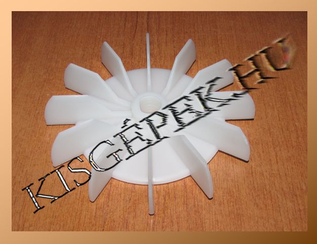 A ventilátor lapát külső átmérője 150 mm. A furat átmérője 16,8x15 mm, lapolt. A lapát magassága 27 mm.